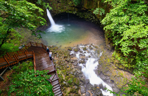 주변은 현무암이 식으면서 만들어낸 주상절리로 둘러싸여 있으며, 그 가운데 파여 있는 폭포수의 소리는 마치 다른 세계로 연결되는 입구 같은 느낌을 줍니다.