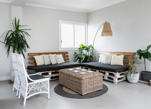 - 통창 구조 / 우드톤 인테리어 / 천장 높은 구조