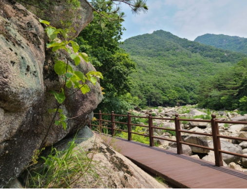 - 계곡 쉼터: 나무벤치와 바위 위 쉼 공간 마련